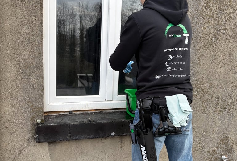 Chez mr clean, nous offrons un nettoyage de vitres impeccable à Bruxelles, pour particuliers et entreprises, avec un résultat net, sans traces.